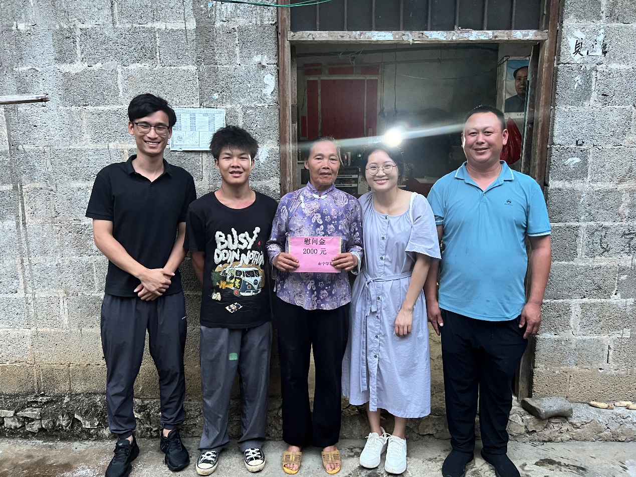 8月21日上午,刘正波、王嘉琪和宁浩三位老师从南宁驱车四百多公里,历经十个小时的车程前往克长乡后寨村,来到了2020级机械设计制造及其自动化7班韦亚准同学的家中。韦亚准父母常年外出打工,从小由爷爷奶奶抚养长大,随着爷爷和父亲的相继病故,留下他与奶奶相依为命。穷人的孩子早当家,暑期韦亚准同学都在外打工兼职,赶在开学前回到家中帮年迈的奶奶干农活,以便在开学前能将家里的农活干完。