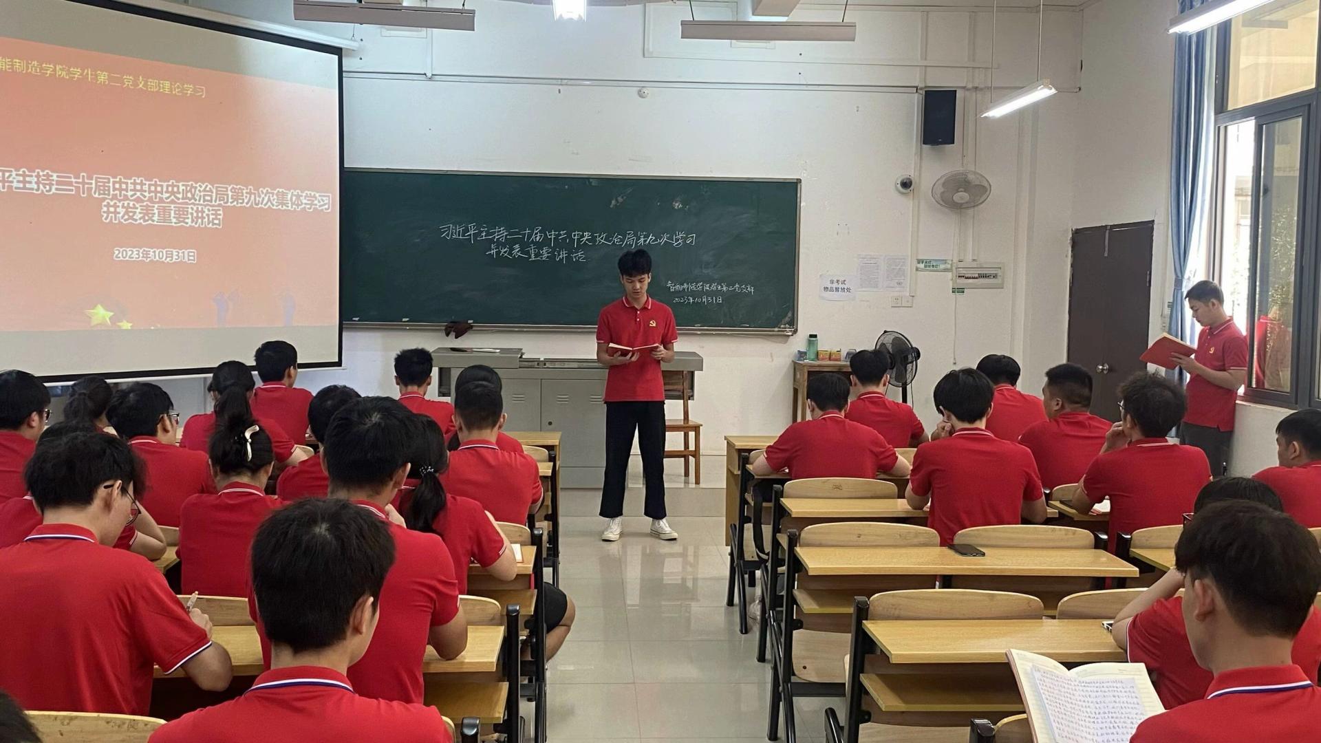 为深入学习贯彻习近平主持二十届中共中央政治局第九次集体学习并发表重要讲话,铸牢中华民族共同体意识,引导各族人民牢固树立休戚与共、荣辱与共、生死与共、命运与共的共同体理念。不断加强和改进党的民族工作,扎实推进民族团结进步事业,推进新时代党的民族工作高质量发展。10月31日中午12点,智能制造学院学生第二党支部在敷文园F106教室召开专题理论学习,本次专题理论学习由韦曾栌同志主持。