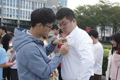 活动伊始,国旗护卫队步伐铿锵,伴随着雄壮激昂的《义勇军进行曲》,鲜艳的五星红旗冉冉升起,全体师生肃立注目,致敬五星红旗,与国旗一同升起的,还有对新学年、新时代的无限向往。紧接着,为了激励学院师生继承和发扬“爱国、进步、科学、民主”的五四精神,培养爱国之情、砥砺强国之志。学院在红旗下为33位新团员授徽,由学生科的老师为新团员佩戴团徽,并在团委书记的带领下庄严宣誓。青年强则国强,青年兴则国兴,时代的责任赋予青年,时代的光荣属于青年。新团员的加入,为基层团组织带来了新鲜血液,也希望他们今后的学习生活中,谨记誓言与使命,为党团事业添砖加瓦。