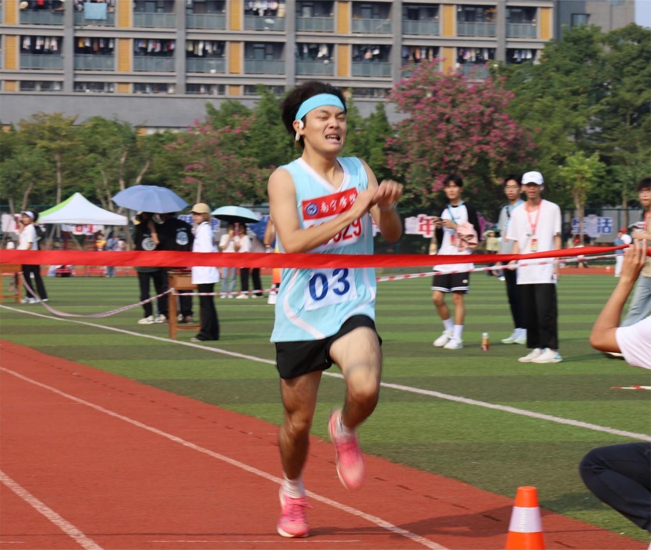 奋勇争先,百舸争流,赛场上智造学子厚积勃发,少年满腔热情志在远方,韶华不负努力惊艳四方。在赛场上,他们突破自我挑战极限,他们为荣誉而战,他们为梦想拼搏,每一个瞬间都令人热血沸腾。23机本1班的赵立鲜同学,凭借过硬的身体素质,成功拿下学生组男子1500米和5000米冠军。21电本2班的杨鑫强同学在400米栏比赛中勇夺桂冠,并以1:05.32的好成绩打破校运会记录。在跳高比赛中,运动员们一次次跃过横杆,他们身轻如燕,他们勇于挑战,21级机器人工程2班莫俊杰获男子组跳高第一。无论是个人项目,还是团体项目,智造师生都奋勇向前,在学生组男子4X400米第一名勇夺第一,院长陶兴华和王彦岗老师分别摘夺1500米和400米A组和B组的冠军……