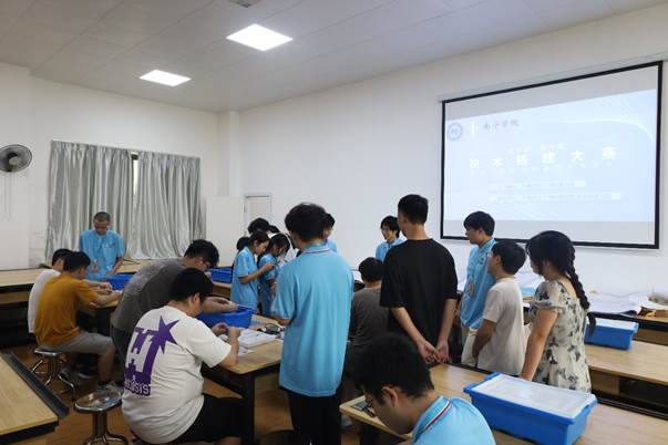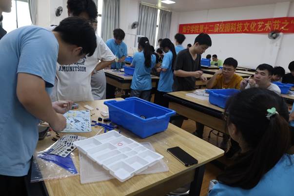 2024年6月16日上午9:00至21:00,南宁学院活动中心304人头攒动,热闹非凡。这里正在举行南宁学院第十二届校园科技文化艺术节之“学中动,动中用”积木搭建比赛。本次活动由共青团南宁学院委员会主办,共青团南宁学院智能制造学院委员会承办,旨在激励同学们认真学习专业知识,实践学习成果,同时促进同学间的交流学习。