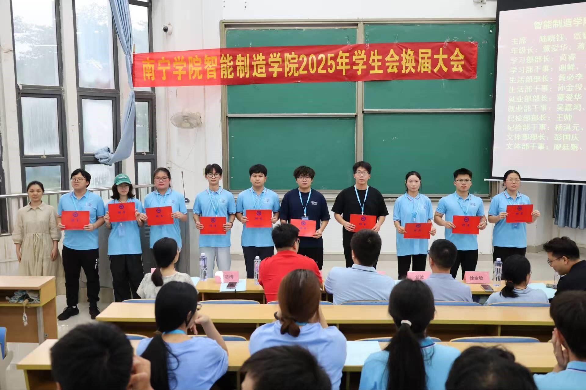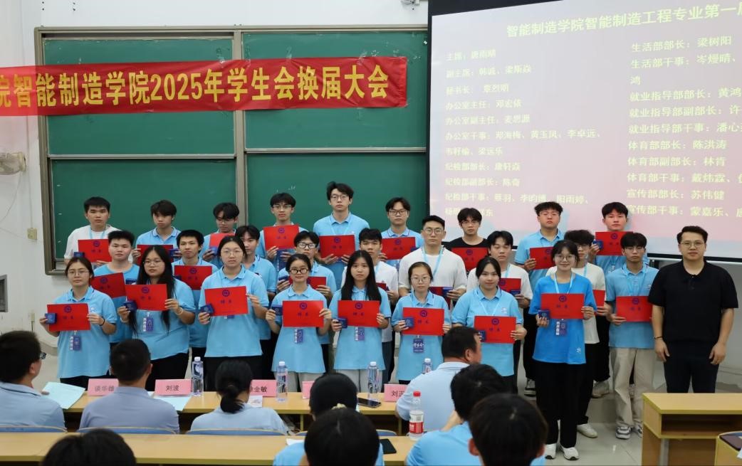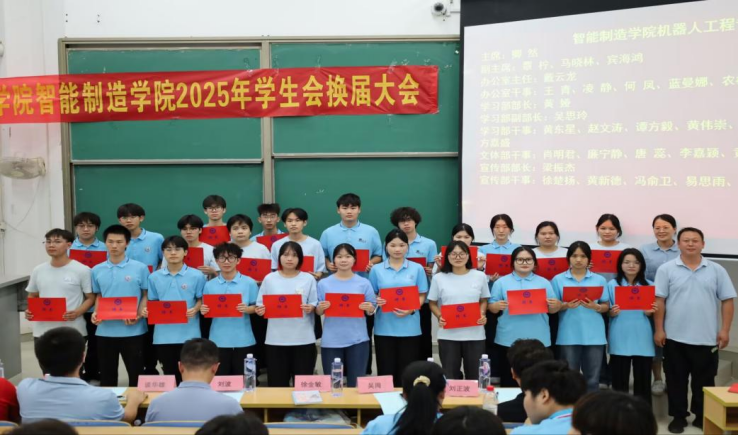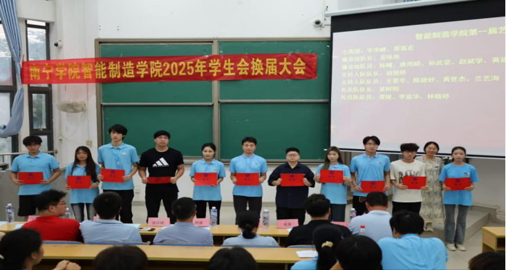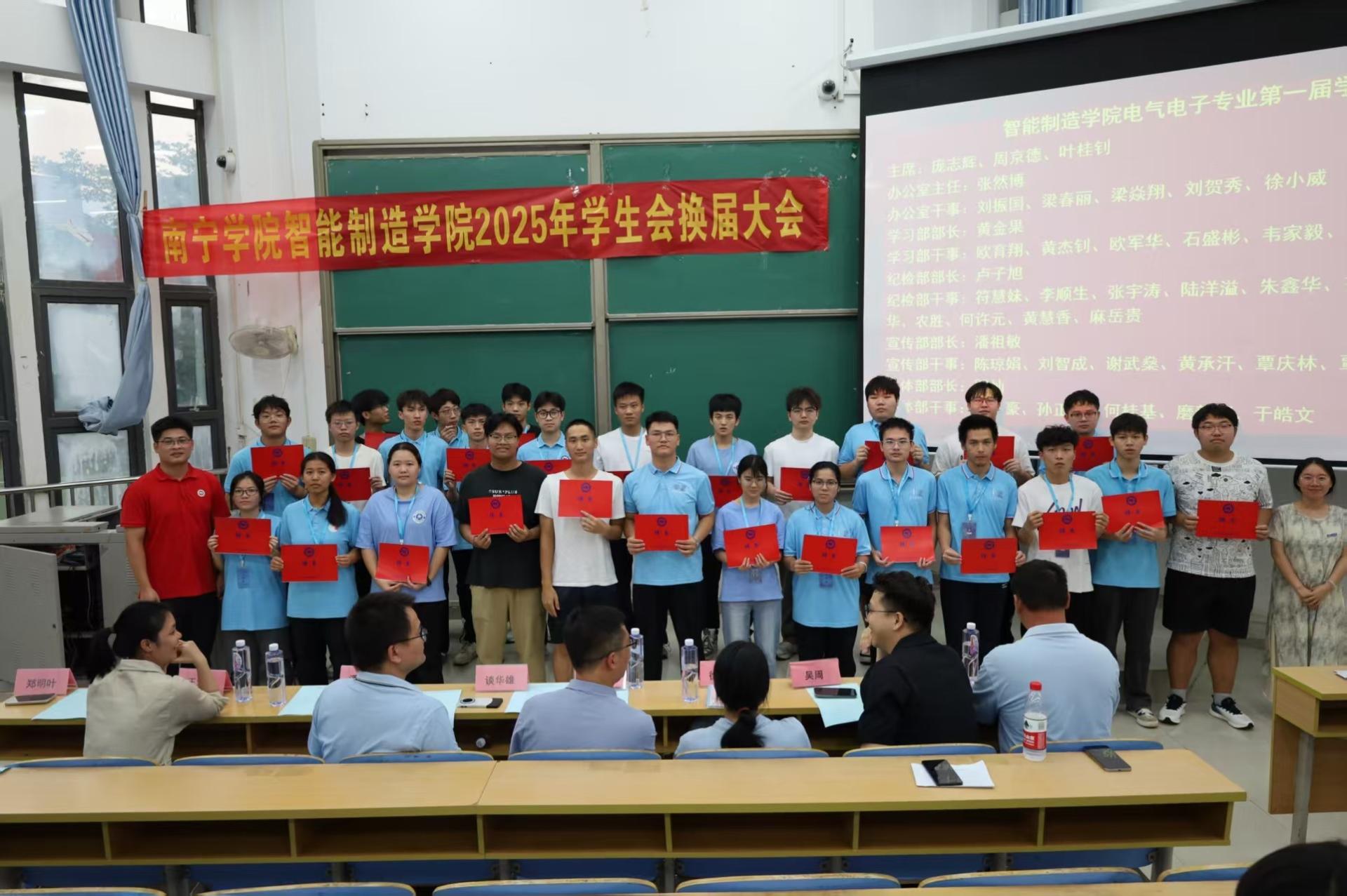 为传承优良传统,明确发展方向,进一步推动学院学生组织建设,6月22日晚,南宁学院智能制造学院专业学生会与艺术团的换届大会在敷文园A211顺利举行。本次换届大会包含电气、机械、机器人、智能制造四个专业的学生会成员及艺术团成员,各专业指导老师共同参与了这场涉及组织传承与发展的活动。党委副书记刘波老师和学生科科长谈华雄老师应邀出席。大会由林晓婷和王夏冬两位同学担任主持人。