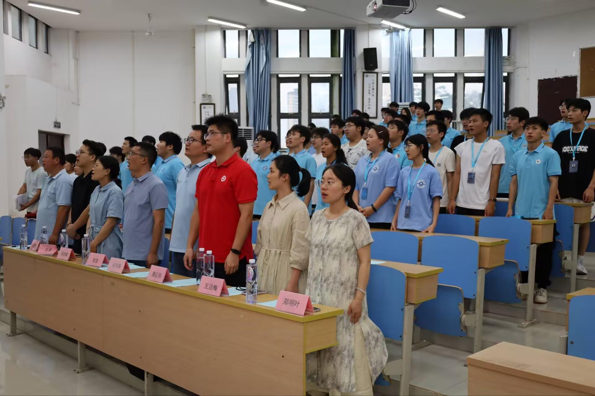 大会伊始,全体参会人员庄严肃立,齐唱中华人民共和国国歌,激昂的旋律为换届大会揭开了序幕。随后,现场播放了团委组织精心录制的祝福视频,温馨与期许交织的画面,传递着对智能制造学院学生组织的深切支持与鼓励。
