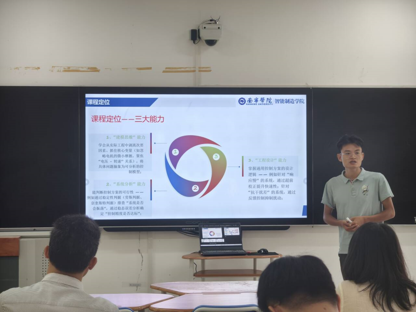 其他教师也分别结合所授课程如《智能制造装备》、《工业机器人》、《智能传感器与检测技术》、《电气控制与PLC》等,从课程定位、教学设计、能力目标、教学方法与创新理念等多个方面展开说课,体现出鲜明的学科特色与改革意识。其他教研室的韦海峰、彭安校、滕宇等老师以及外聘教师王永强老师也积极参与交流,分享教学见解与实践经验。