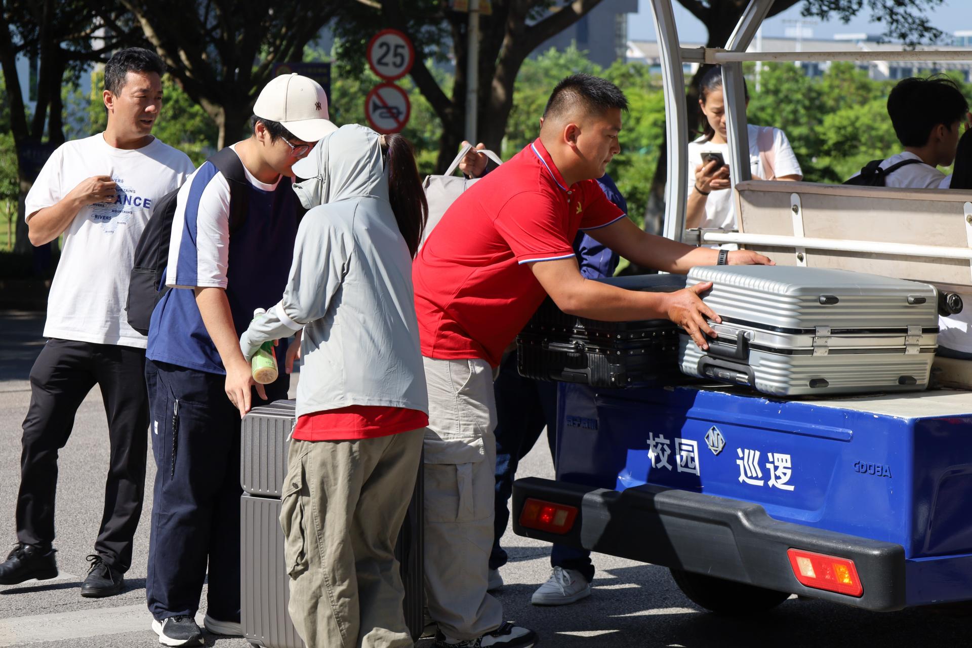 迎新现场,学院领导、教师及学生志愿者协同服务,从接待点布置,到注册流程梳理,再到校园引导、行李搬运等各个环节,都做了细致规划。新生在志愿者引导下依次完成身份验证、材料提交及礼包领取,流程便捷、体验温馨。