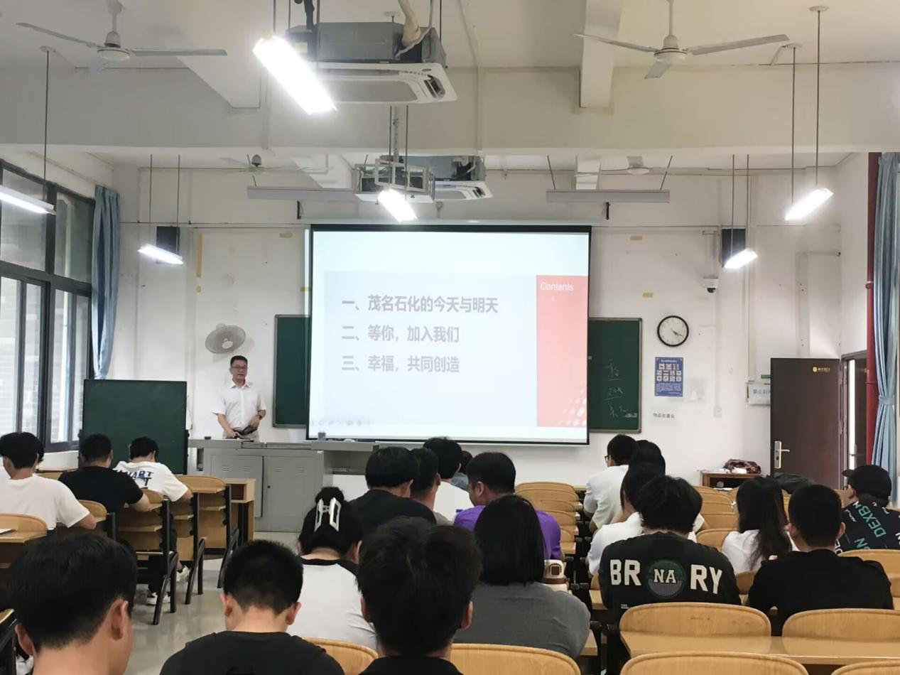 为精准对接行业优质资源,为学子搭建高质量就业桥梁,10月15日下午,中国石油化工股份有限公司茂名分公司校园宣讲会在敷文园 B106 教室顺利举行。本次宣讲会由智能制造学院牵头组织,聚焦机械设计制造及其自动化、智能制造工程、电气工程及其自动化等核心专业,吸引百余名毕业生到场参与。