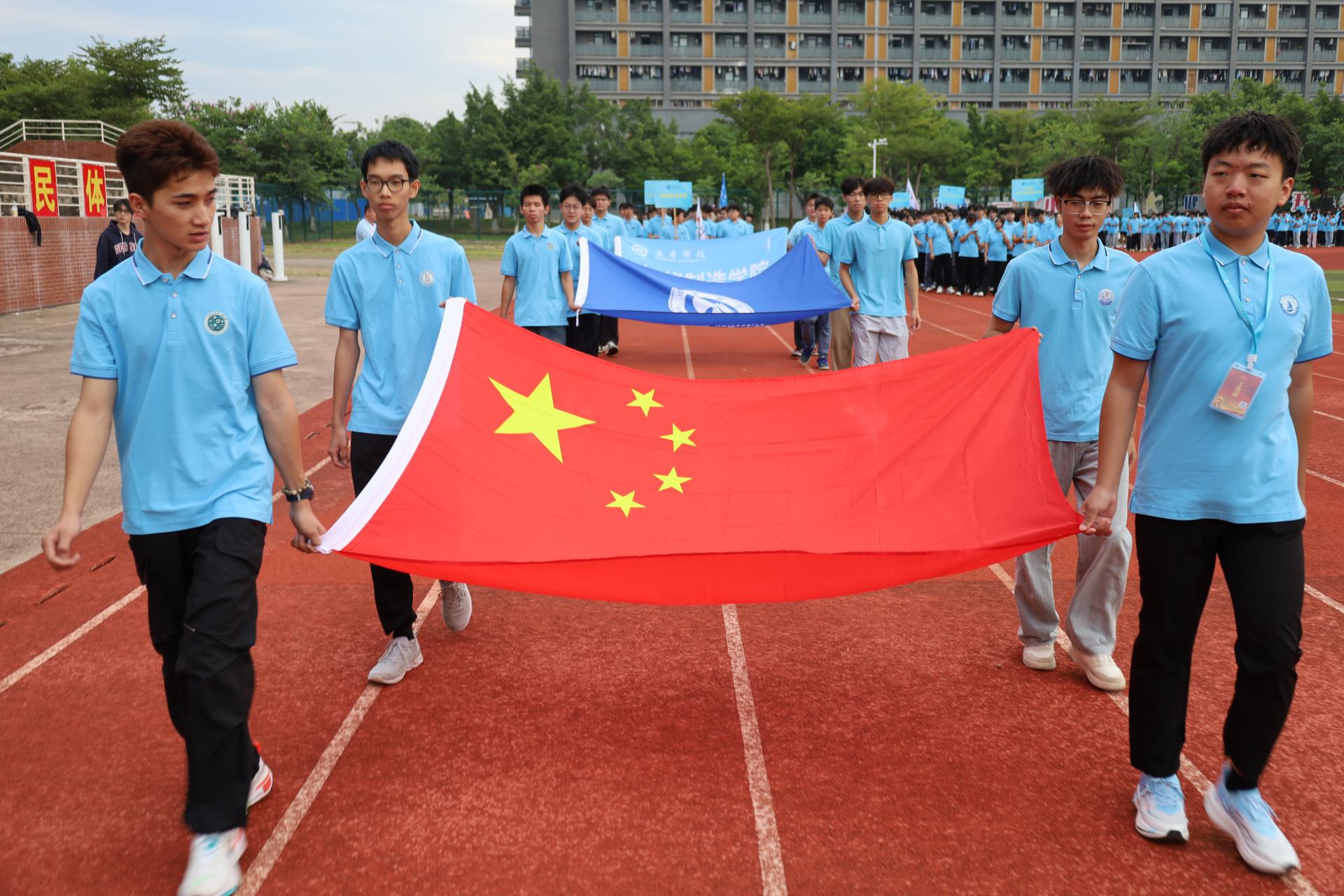 伴随着激昂嘹亮的《运动员进行曲》,开幕式入场仪式正式开始。国旗护卫队队员身着礼服、身姿挺拔,迈着铿锵步伐护送国旗率先入场;院旗队队员精神抖擞,擎举院旗展现学院凝聚力。各班级队伍步伐整齐、口号嘹亮,充分展现了智能制造学子的专业自信与团队风采。紧接着,入场仪式后,全体师生肃立,举行升国旗、唱国歌仪式。鲜艳的五星红旗在朝阳中冉冉升起,国歌旋律激昂,现场气氛庄重肃穆。