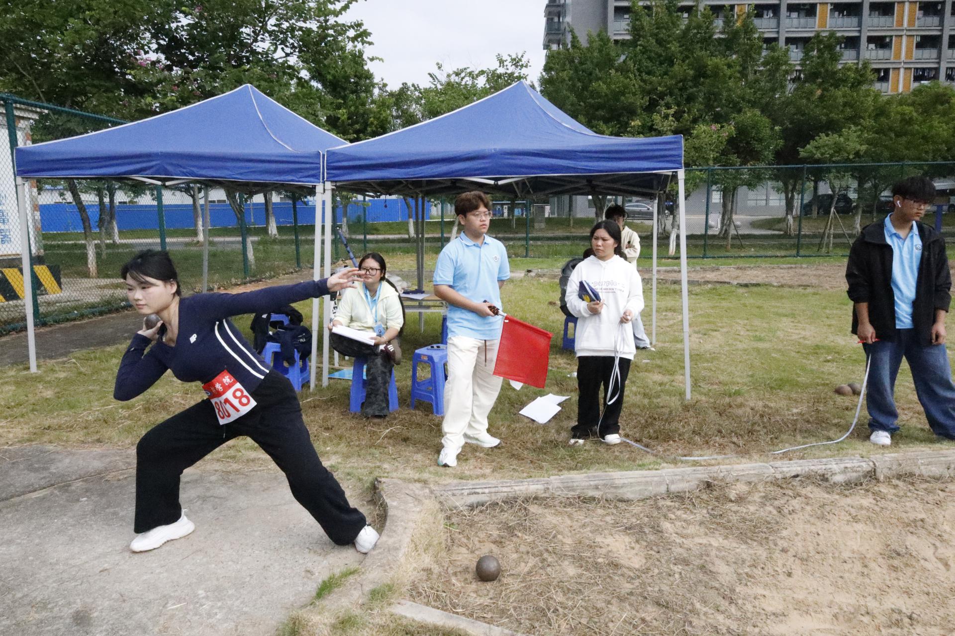 随着发令枪响,各项赛事有序展开,赛场内外洋溢着紧张而热烈的竞技氛围。径赛项目中,男子100米预赛率先打响,选手们弓身凝神,发令枪一响便如离弦之箭冲出起跑线,红色跑道上激荡着速度与激情的碰撞。田赛区域同样精彩纷呈,跳高赛场上,选手们助跑、起跳、过杆,身体在空中划出轻盈弧线,横杆高度一次次被刷新,观众席不时爆发出阵阵欢呼。铅球赛场,选手们持球、转身、发力,铅球在力量与技巧的融合下划出抛物线,落地时的沉闷声响与落点标记,展现着力量之美的震撼。赛场之外,各班级设立的服务站点提供饮用水、医疗用品等物资保障,及时为运动员提供帮助;广播台实时播报赛事进展、运动员风采及班级加油稿件。