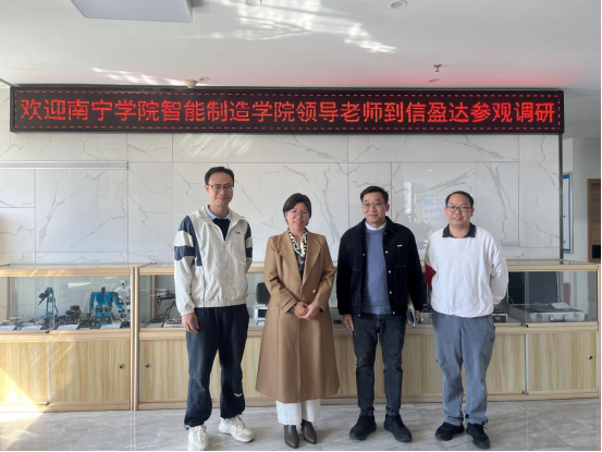 11月20日上午,我院副院长黄世玲、实践科科长何宇一行前往深圳信盈达科技有限公司南宁分部进行走访交流,公司负责人黎小萍总经理热情接待。双方就进一步加大合作深度,拓宽合作领域进行了交流和探讨。