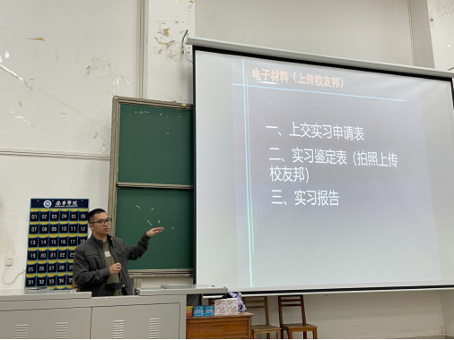 会议伊始,黄才贵老师对《毕业实习》课程进行全面解读。黄老师围绕实习内容、纪律规范、管理系统及材料提交等事项作了具体布置。他特别强调实习期间的安全管理,明确要求学生须严格遵守国家法律法规、学校实习规定及企业相关制度,确保实习全过程安全、规范、有序。黄老师指出,毕业实习是衔接理论与实践、认知社会与规划未来的关键一环,是学生融入真实生产环境、参与专业相关岗位工作的重要机会,对提升专业综合能力与工程实践素养具有关键作用。他勉励全体同学珍惜机会、恪守职责,在实习岗位上主动学习、勤于沟通,展现出我院学子优秀的专业素养与精神风貌。