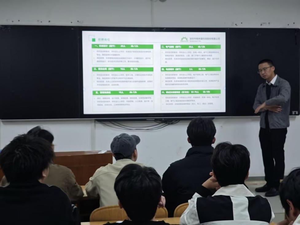 宣讲会上,陈海兵先生详细梳理了深圳市格林晟科技股份有限公司的发展脉络、核心业务布局与行业发展前景,让在场学子对企业实力建立起全面认知。他重点解读了本次校招的核心信息:从岗位设置、任职要求,到完善的薪酬福利体系,再到系统化的人才培养计划——涵盖新人入职培训、阶段性能力提升、中长期职业晋升通道等全流程培育环节,全方位展现了企业对青年人才的重视与培养诚意。宣讲结束后,同学们踊跃与招聘团队展开深入交流,主动分享自身专业能力与实践经历,积极争取求职机会,现场互动氛围热烈。