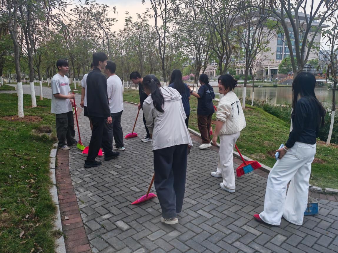 活动现场,同学们充分发挥不怕脏、不怕累的优良作风,全身心投入到环境清扫工作中:路面组用扫帚、夹子等工具清除落叶与碎石;绿篱组清理草丛中隐藏的塑料瓶、烟头等垃圾;垃圾分类组则对收集物进行分类装袋。经过一个多小时的集中整治,不孤湖畔沿湖300余米区域的环境面貌得到显著改善,湖面周边整洁有序、绿意盎然,赢得了过往师生的一致好评。