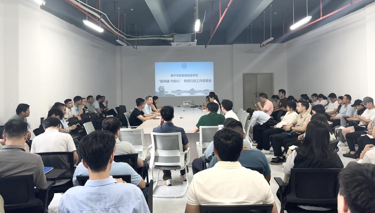 此次部署会为学院师德师风建设锚定方向、压实责任。下一步,智能制造学院将以专项行动为抓手,拟定学院落实方案,细化任务清单,强化督导落实,推动师德师风与学科建设、人才培养、社会服务深度融合,引导教职工潜心育人,助力学院高质量发展,为学校建设高水平应用型大学贡献智能制造力量。(综合科供稿文/韦金林 图/余梦君 一审一校:韦玫羽 二审二校:刘波 三审三校:陶兴华)