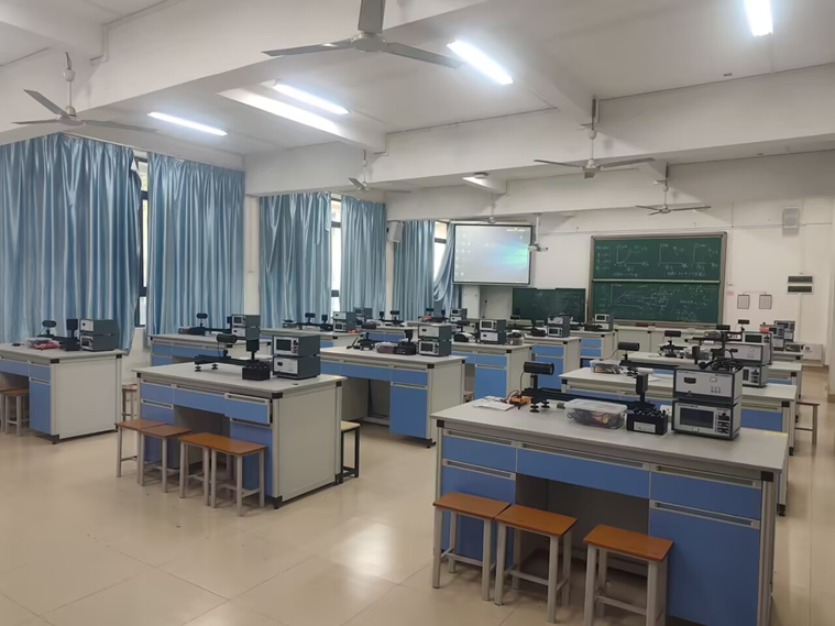 物理热力学实验室建筑面积146平方米,该实验室的主要有以下设备:太阳能电池基本特性测试仪、多功能风力发电实验仪、杨氏弹性模量测定仪、光杠杆、SLE-1固体线胀系数测定仪、HTC-1加热温度控制仪、LST-1拉脱法液体表面张力实验仪、游标卡尺、螺旋测微计等。