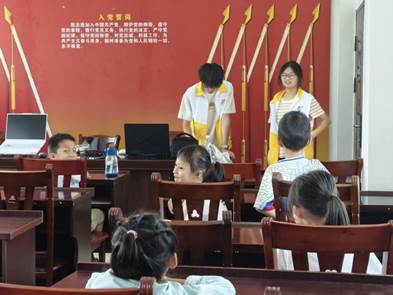清晨,支教团志愿者们早早整理好行装,以饱满的精神状态迎接这特殊的一天。教学活动的第一课是安全知识普及。志愿者们结合当地实际,通过生动的案例讲解和互动问答,为孩子们上了一堂防溺水安全教育课,用通俗易懂的语言突出“远离危险水域”“同伴遇险不盲目施救”等关键要点,切实提升了孩子们的安全意识。随后,课堂氛围转向轻松愉悦——志愿者们带领孩子们唱起经典红歌,稚嫩的童声与青春的旋律交织,不仅传递了红色文化,更在歌声中培育了孩子们的集体归属感与爱国情怀。