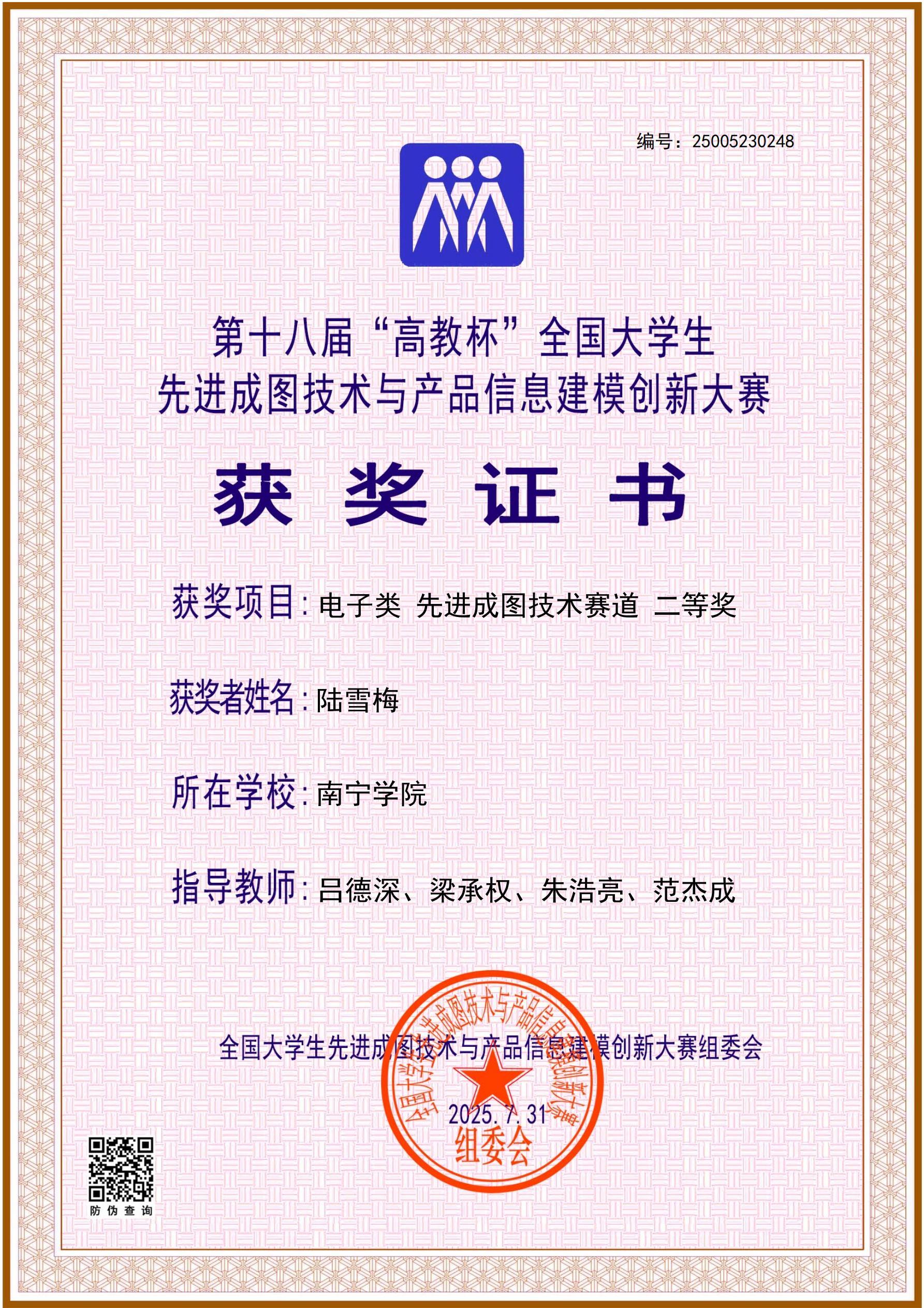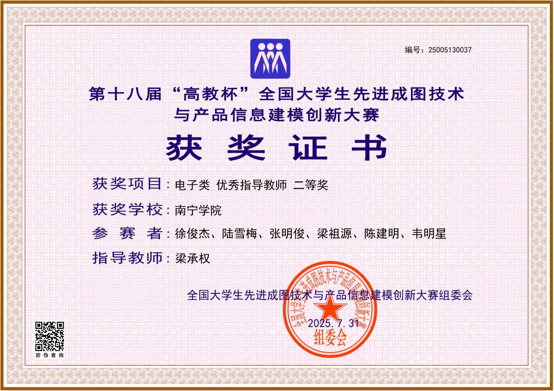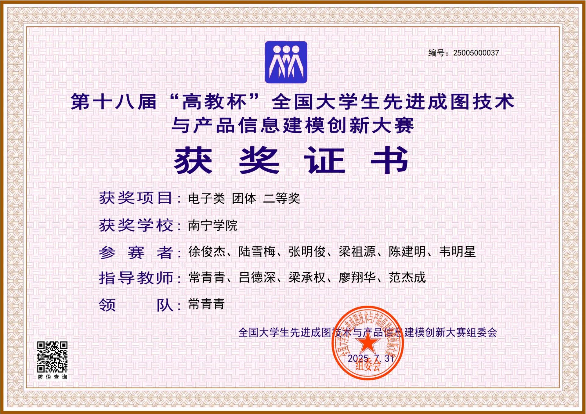 十八届“高教杯”全国大学生先进成图技术与产品信息建模创新大赛证书